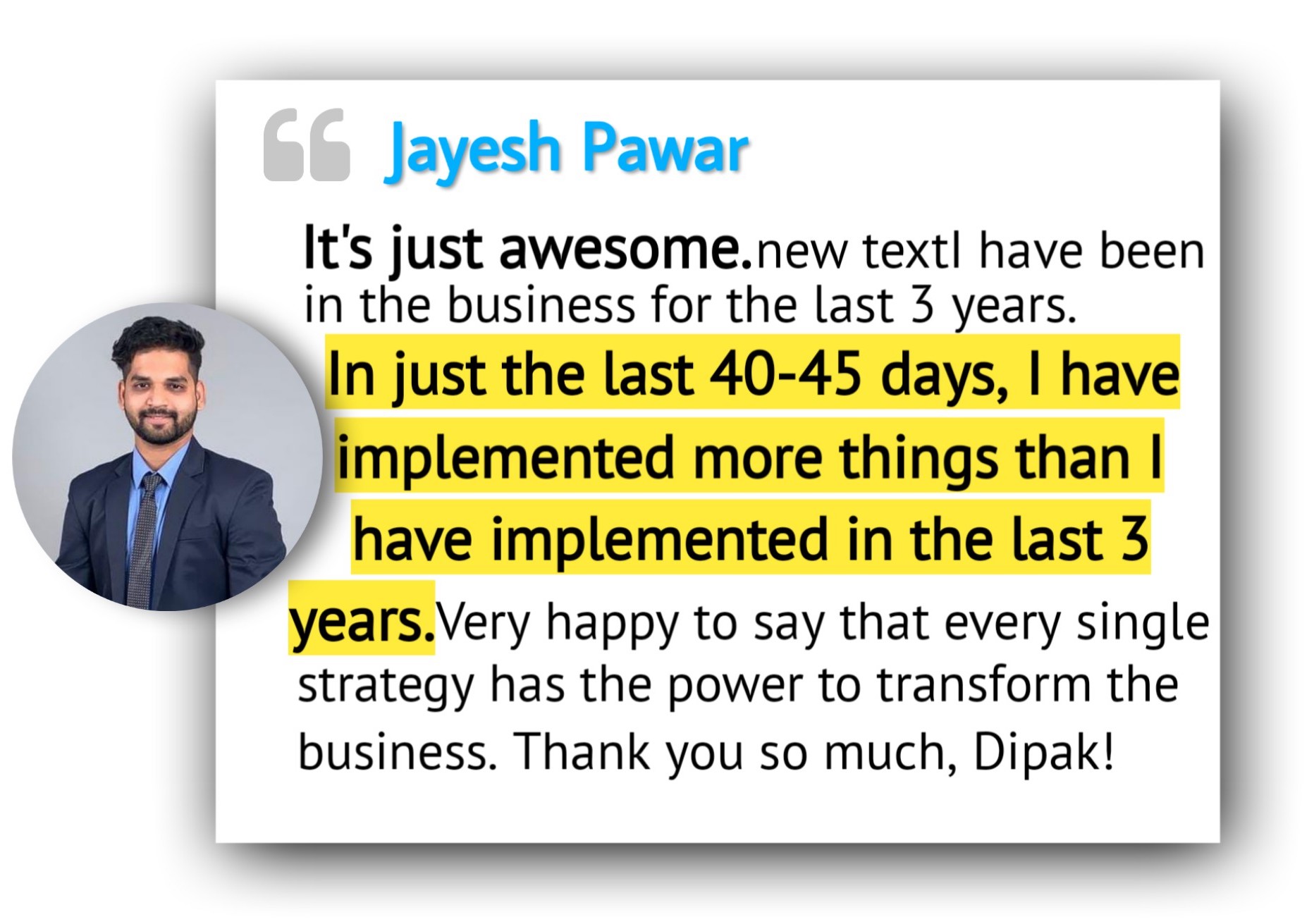 The business frameworks that you will find inside this program have helped literally thousands of companies all over India to grow faster than ever before.